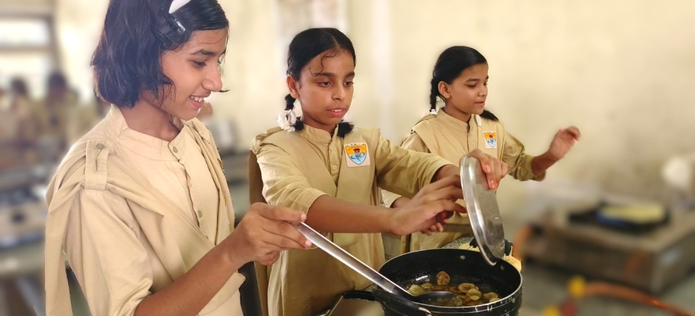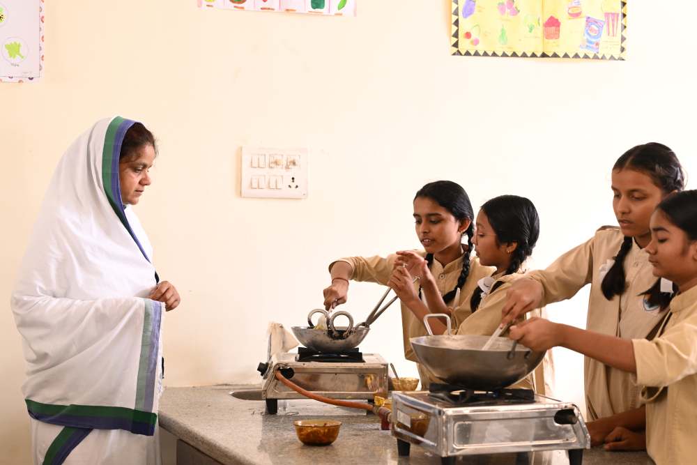 यहाँ कक्षा 6 से लेकर 12वीं तक प्रत्येक छात्रा को घर के सामान्य भोजन से लेकर सभी प्रकार के व्यंजन बनाने व उन्हें परोसने की कला में कुशल बनाया जाता हैं । ताकि भविष्य में उसे व उसके परिवार को बाज़ार का अशुद्ध भोजन करने पर मजबूर न होना पड़ें ।