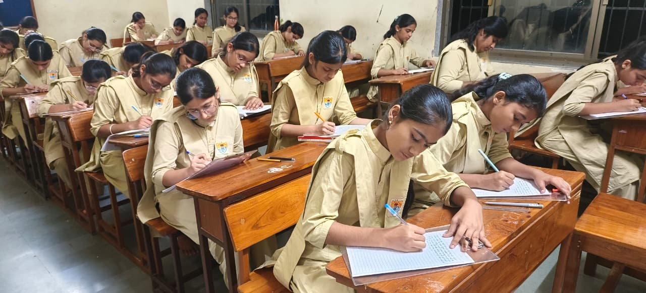 प्रतिभास्थली परिसर में परिश्रमरत सी.बी.एस.ई. कक्षा 10 (2019-20) की छात्राओं का परीक्षा परिणाम घोषित होते ही वातावरण उल्लसित हो गया।